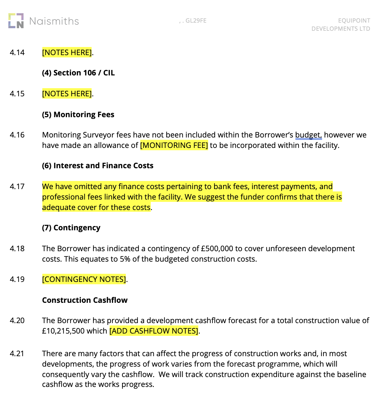 Text highlighted in yellow is required to be entered or edited by surveyor. This is content the platform currently does not automate into the report.Placeholders